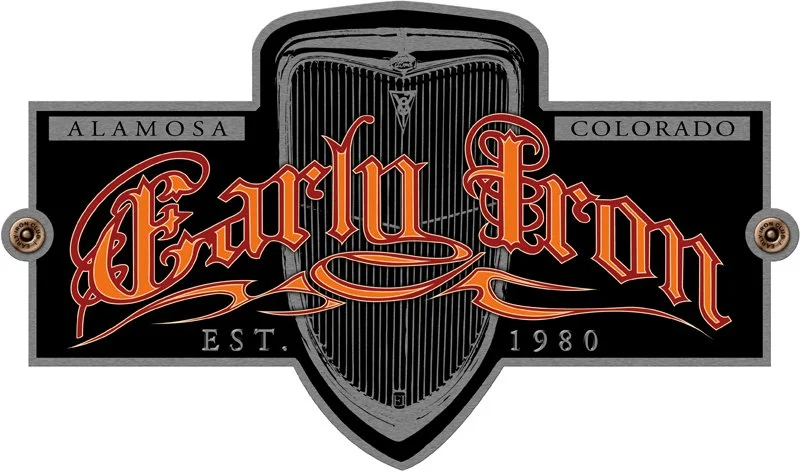 The finished product includes the original location of the club “Alamosa, Colorado” and stamped into the plate at the bottom is the year they were established “EST. 1980”. The rivet areas have brass rivets that say “Early Iron Club”.