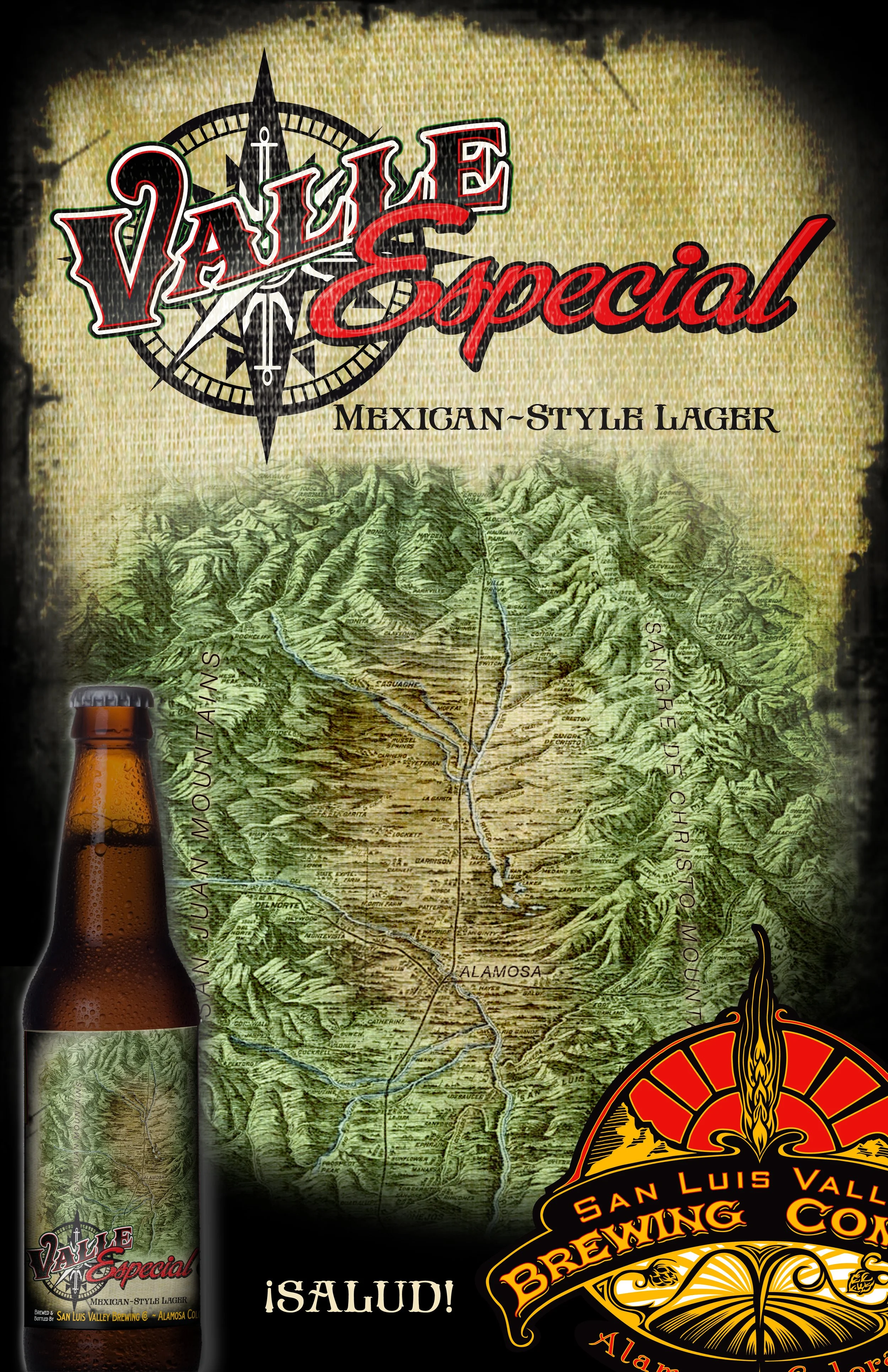 This beer is the San Luis Valley Brewing Co. “Mexican Lager”. They wanted to represent the heritage of our valley, thus the name. I decided to make the artwork as a vintage style topographical map to symbolize both the region, its age, and heritage.