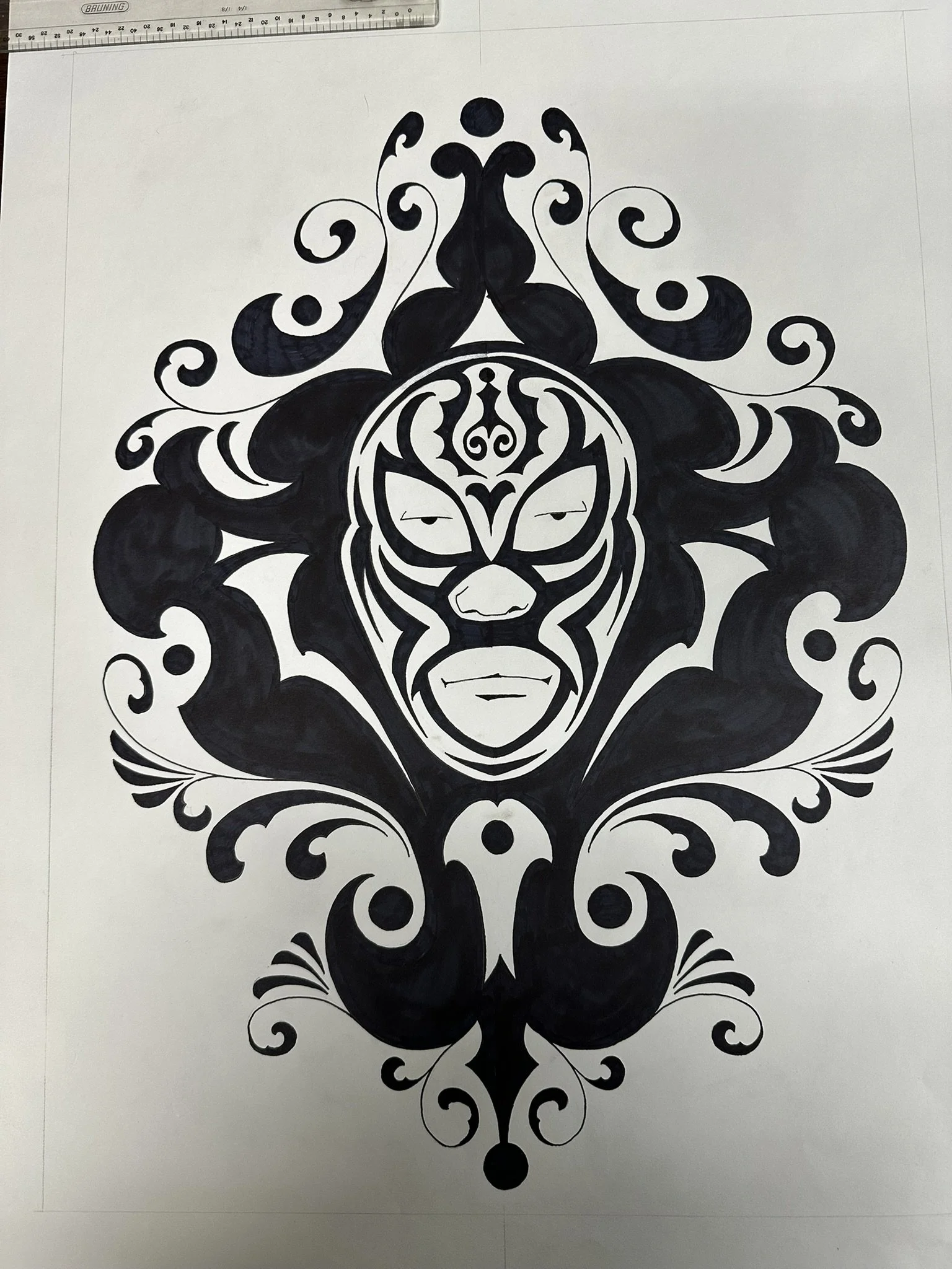 It was a monster because it stole every creative thought from my head. I knew I wanted it to have a very “Mexican” feel to it. I wanted the piece to be painted on wood. I wanted it to look like it was done in a back alley by someone honoring his favorite Luchador.