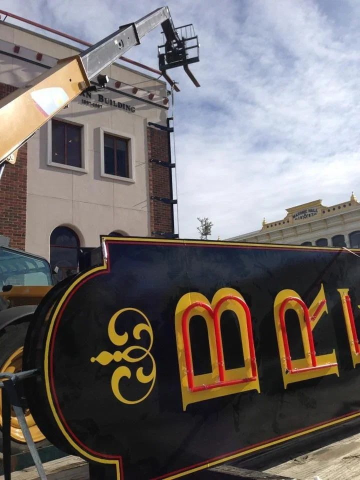 Looking at old photo from the era you can see many hanging signs and that was exactly what the owners wanted. With the local Sign regulations, it couldn’t protrude too far out from the building. Our decision was to do a vertical sign and to keep the message simple.