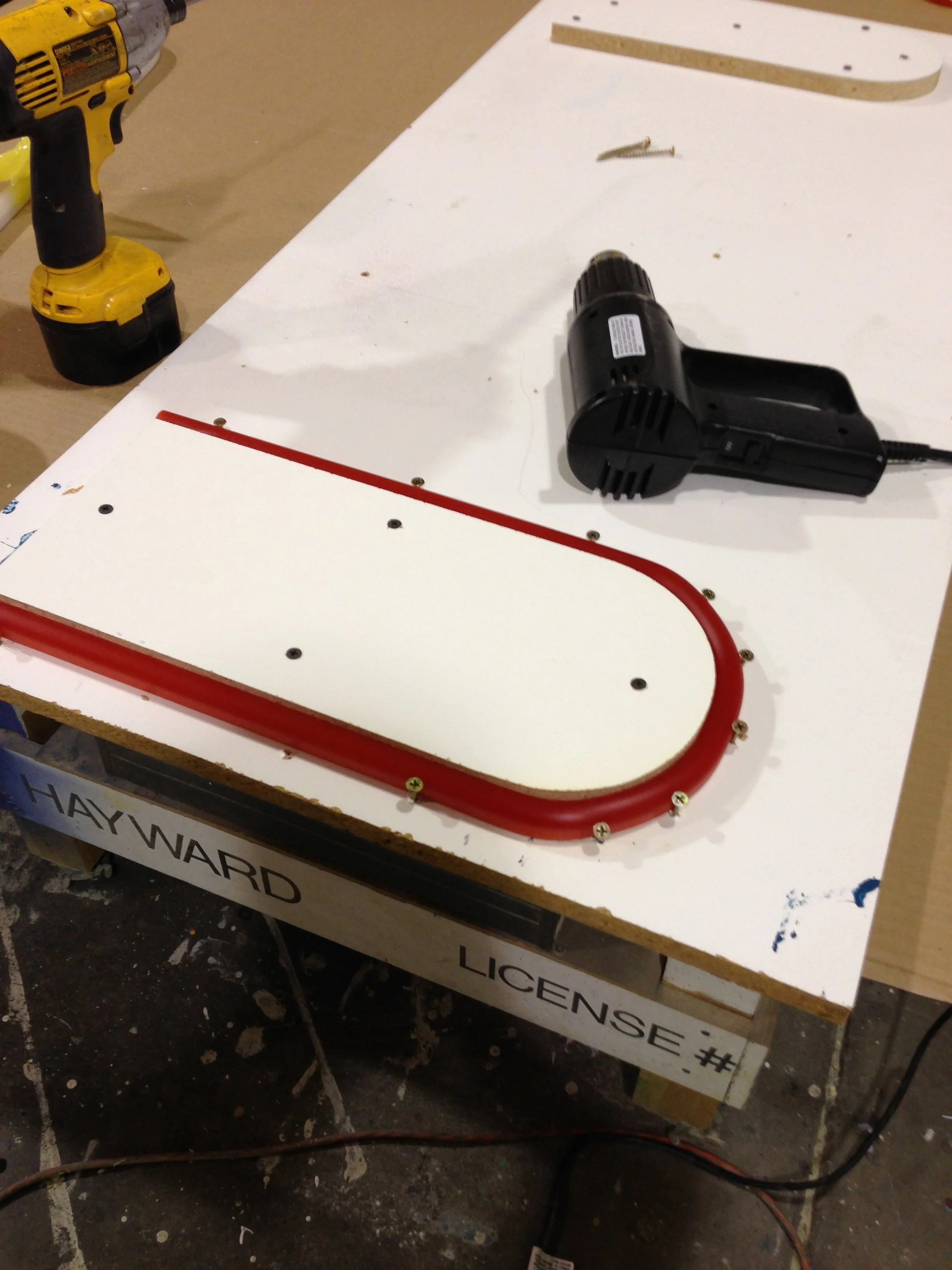 The sign was built to the maximum allowed size by city regulations. It is constructed by welded steel with an internal framework. It slides onto the building mounting brackets mounted to the building making for easier installation.